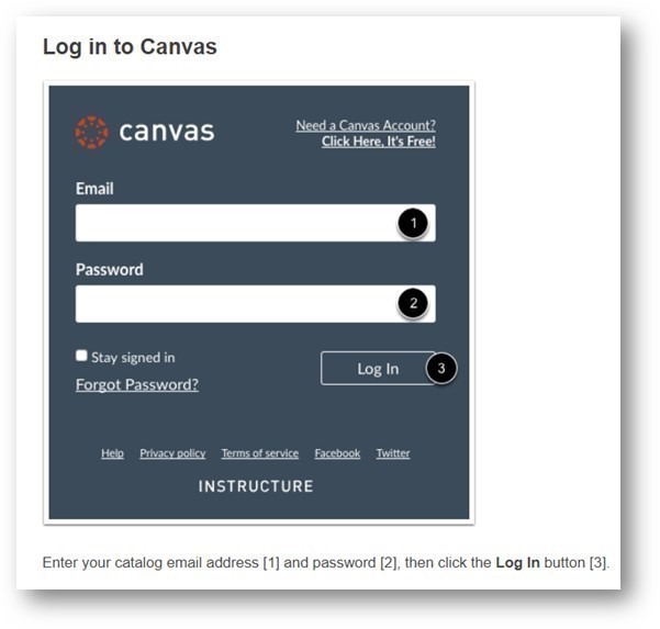 Please log into the Canvas Catalog Dashboard page with your username and password, the link to the Canvas Catalog webpage is below.