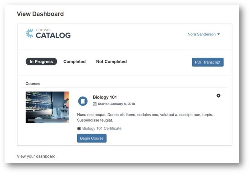 You are able to collect your Learner Transcripts from Canvas Catalog by logging into Canvas Catalog > Student Dashboard> PDF Transcript (right-side).